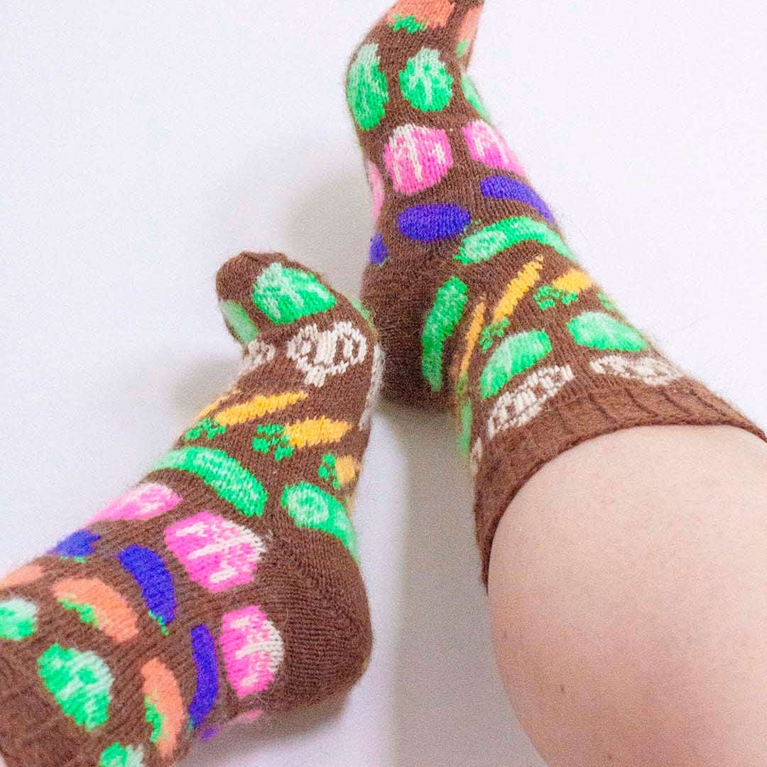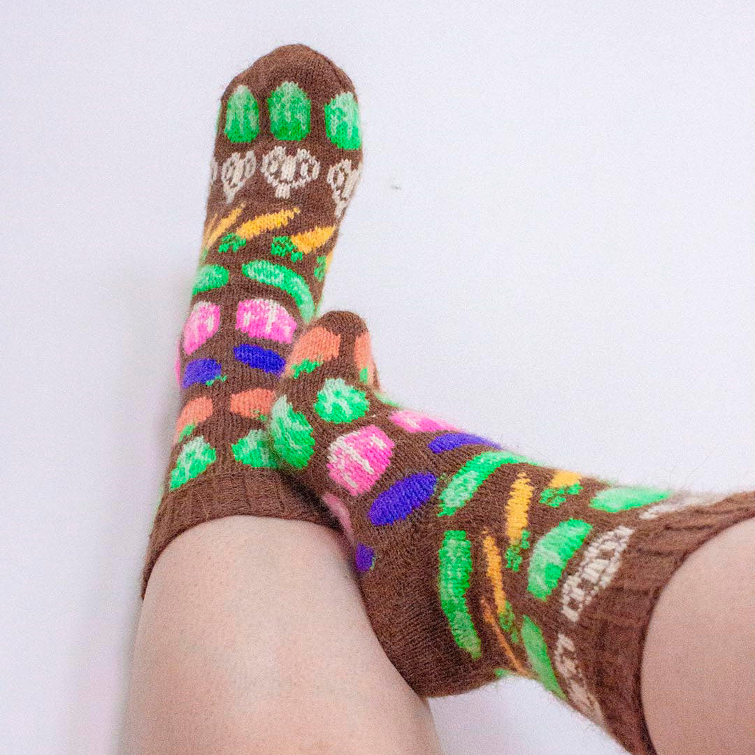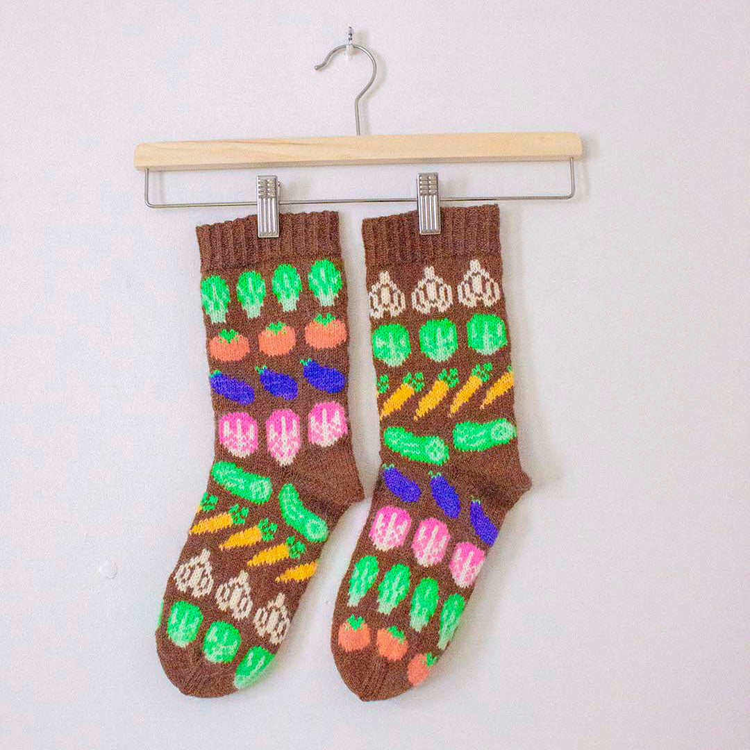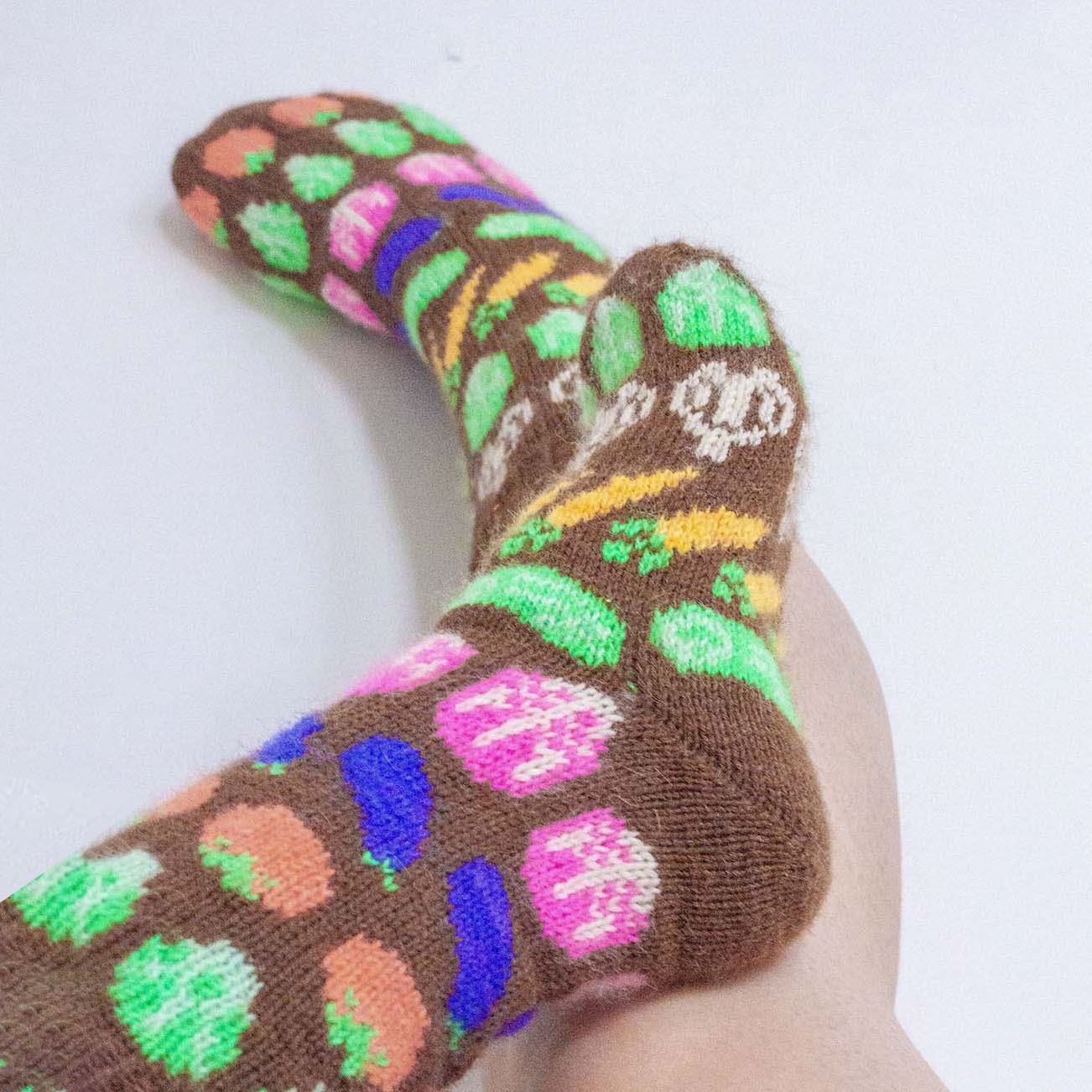 Growing season socks celebrate the start of growing season and all the tasty vegetables you can grow in your own garden. Growing season Fingering pattern includes eight different vegetable inspired charts for mid calf stranded socks.