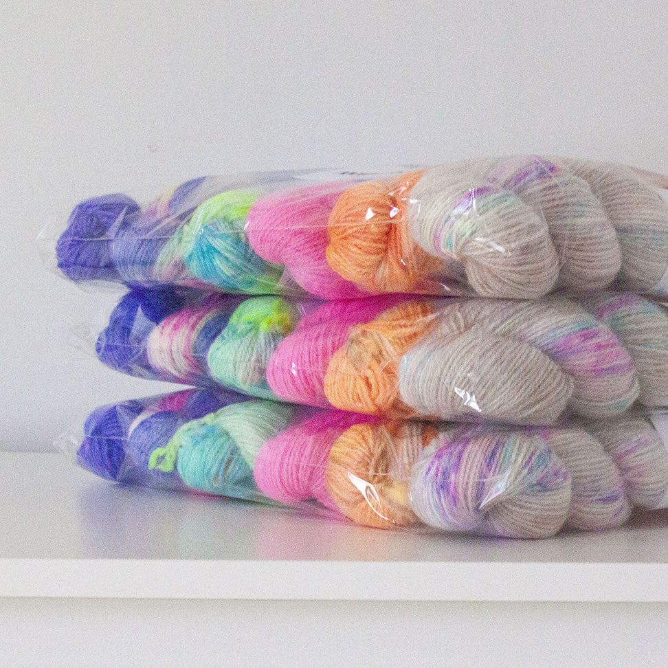 Käsinvärjättynä jokainen vyyhti on uniikki vaikka ne olisivatkin samaa sävyä tai värjäyserää. Välttääksesi selkeän rajan langan vaihtumakohdassa suosittelemme neulomaan vuorotellen kahdesta eri vyyhdistä, jolloin sävyt sulautuvat paremmin toisiinsa.
