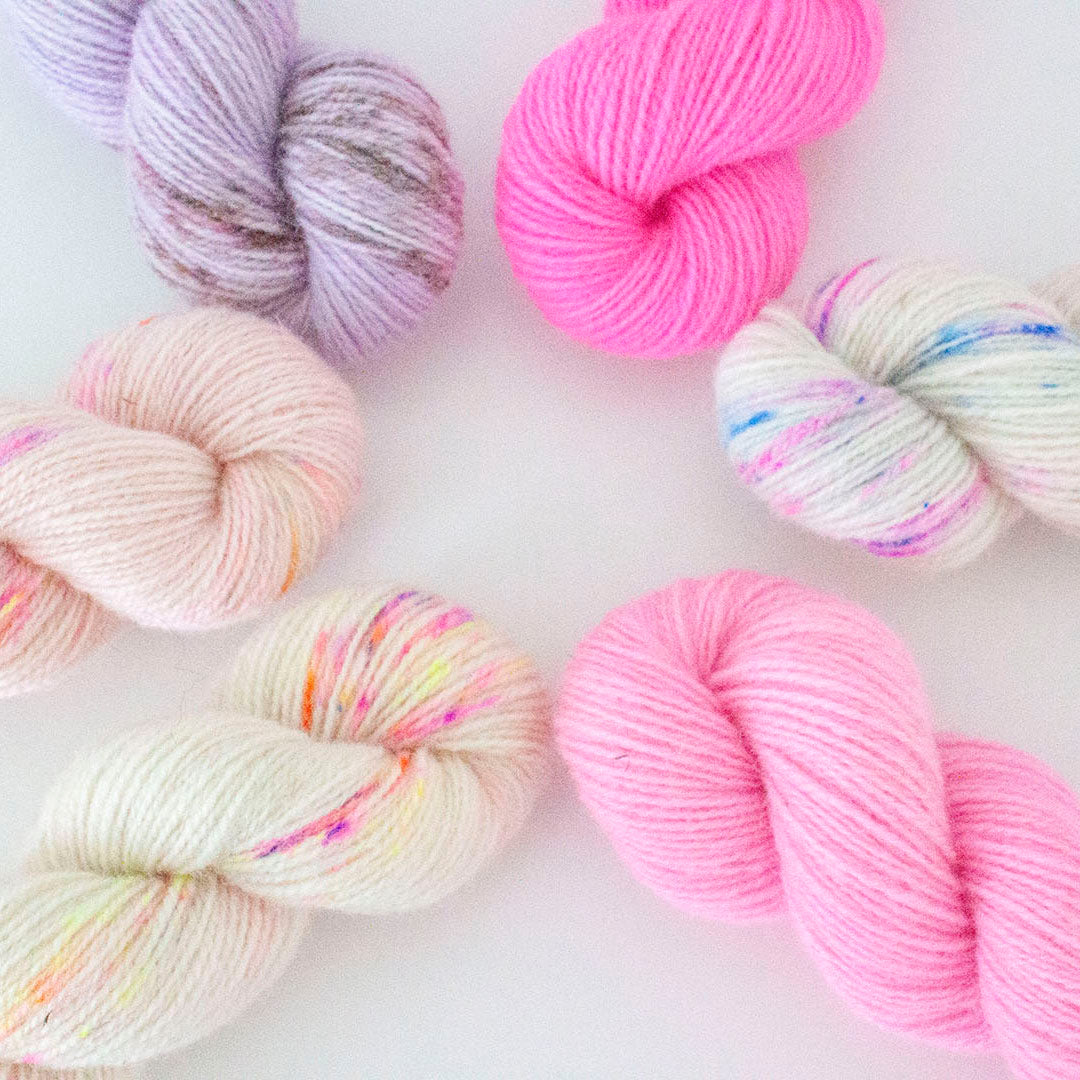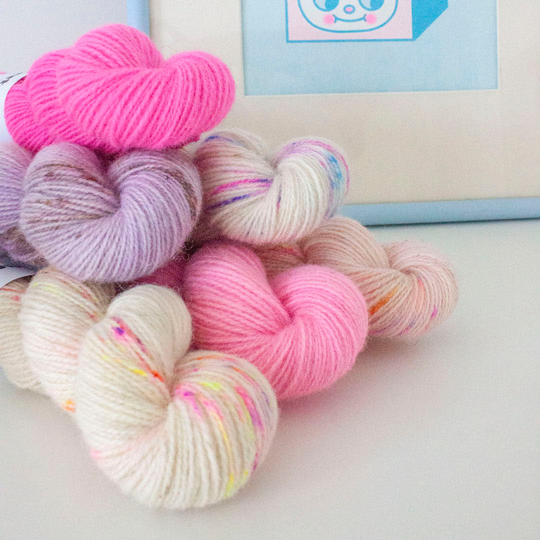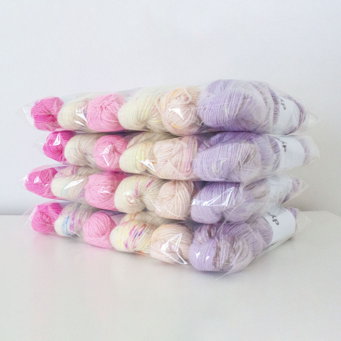 Riittoisa lankalankkumme sisältää yhteensä 300g käsinvärjätyä Kitten sukkalankaa toisiinsa tavalla tai toisella soveltuvissa sävyissä.