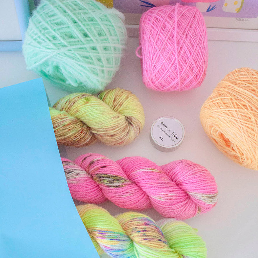 Pussit sisältävät sekalaisen kattauksen testivärjäyksiä, erien viimeisiä vyyhtejä, 2-laatuisia värjäyksiä, varastojen löytöjä, poistuvia sävyjä sekä pohjia.
