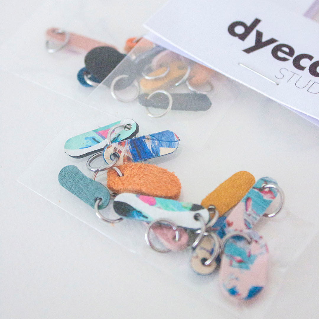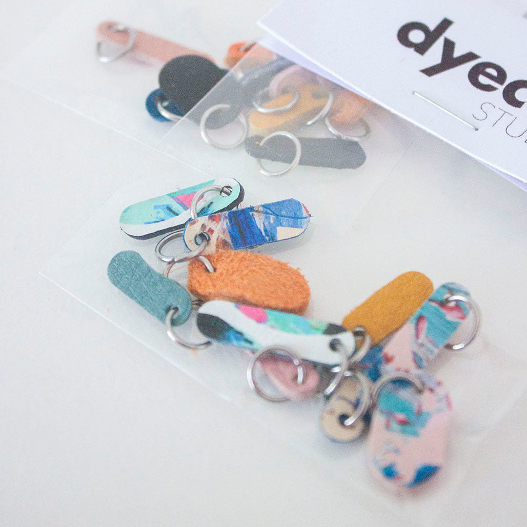 Nahkaiset silmukkamerkit on valmistettu Lahdessa kierrätys- sekä ylijäämänahkasta.