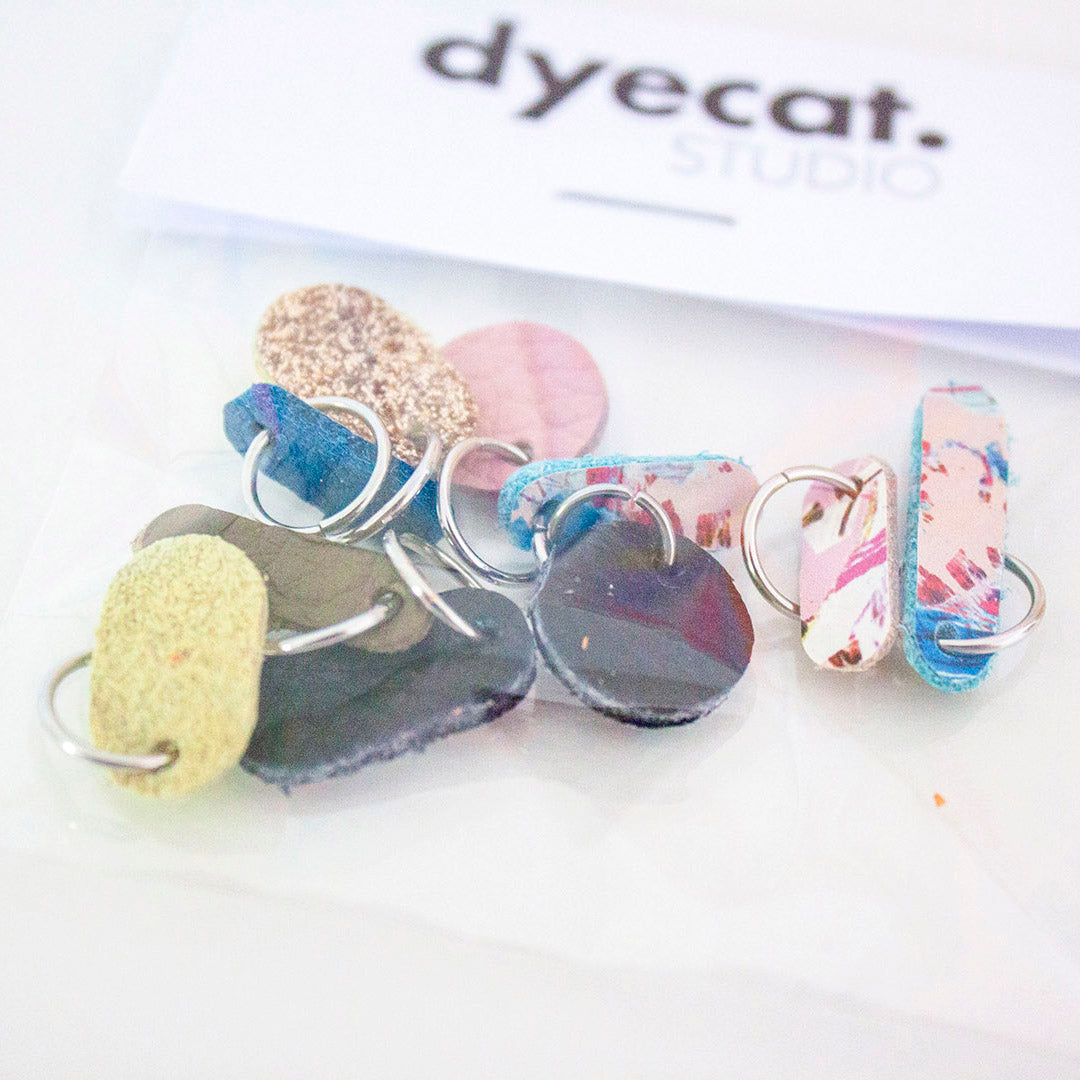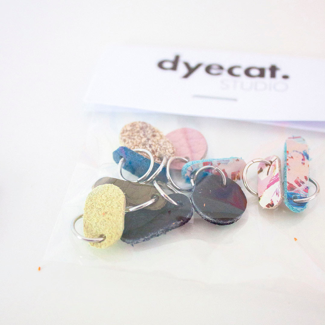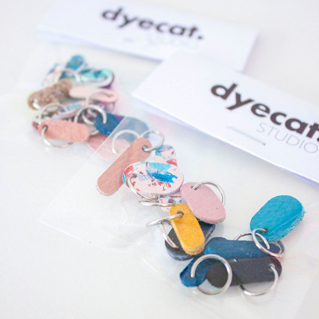 Setti sisältää yhteensä 10 nahkaista silmukkamerkkiä, jotka käyvät 6.00mm puikkokokoon asti.